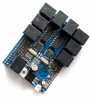 The BrickPi has two microcontrollers, programmed in Arduino language, each of which controls two motors and reads the motor encoder values and two sensor values. The microcontrollers are controlled and polled by the Raspberry Pi over serial lines.