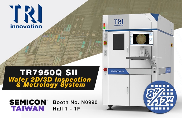 Test Research, Inc. (TRI) announced the latest in AI-powered Automated Optical Inspection (AOI) solutions tailored for the Semiconductor and Advanced Packaging Industry. TRI’s comprehensive SEMI Inspection solutions cater to Advanced WLP/PLP and SEMI Back-End Package processes. It unveil the new TR7950Q SII Wafer Inspection Platform. This advanced system features a 25MP camera with 2.5 μm resolution and a 12MP camera with a 0.55 μm microlens, enabling high-resolution 2D/3D DFF inspection. Equipped with AI-powered inspection algorithms, the TR7950Q SII is designed for Wafer Macroscopic 3D Inspection and micro measurement metrology.