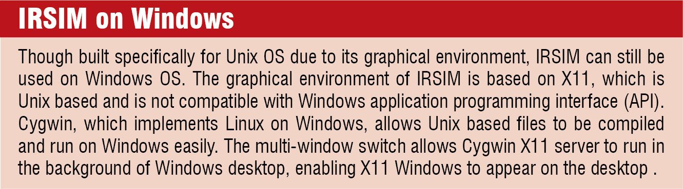 One user on http://opencircuitdesign.com/ likes IRSIM over SPICE because of three important reasons: IRSIM treats transistors as ideal switches; IRSIM, although designed to run in the background, displays information regarding values of signals on VLSI layout; and IRSIM allows quick simulation. The user says, “In my opinion, it is much easier to write complicated test bench simulations using Tcl and IRSIM. I have used IRSIM to validate digital parts of several production chips at MultiGiG, including the simulation of analogue behaviour such as PLL locking.”