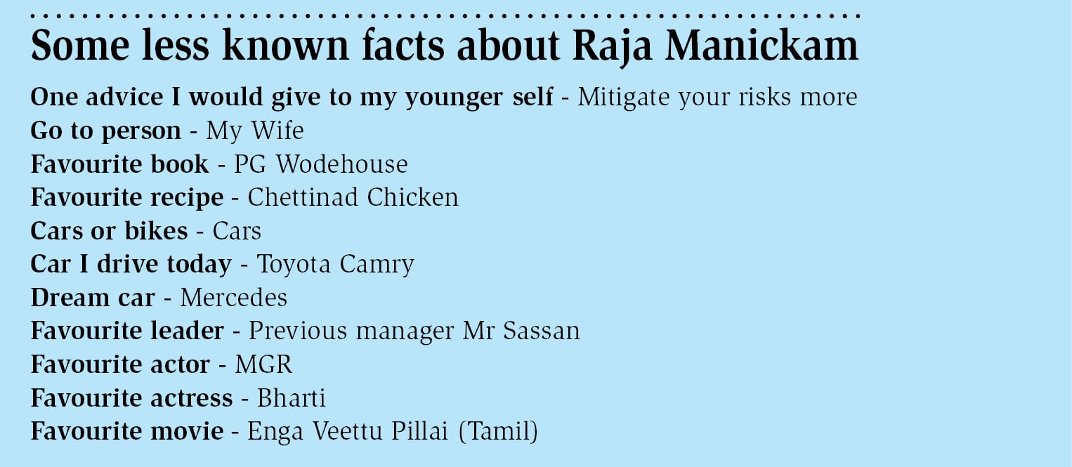 Born in Singapore, Raja came to India at the age of three when his grandfather retired from his job in Singapore and was eager to return to India and built a house in his village. Manickam’s father was working as a teacher in Singapore. “I am the first grandson, and hence I was pampered a lot by my grandparents. I came to India at the age of three with my grandfather,” says Raja who is named after his grandfather as per tradition those days.