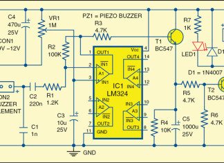 This is a simple circuit that activates an alarm when there is a knock on the door or there are any vibrations due to...