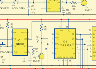 This circuit counts and indicates up to nine persons present in the room and automatically locks the door and switches off lights as soon...