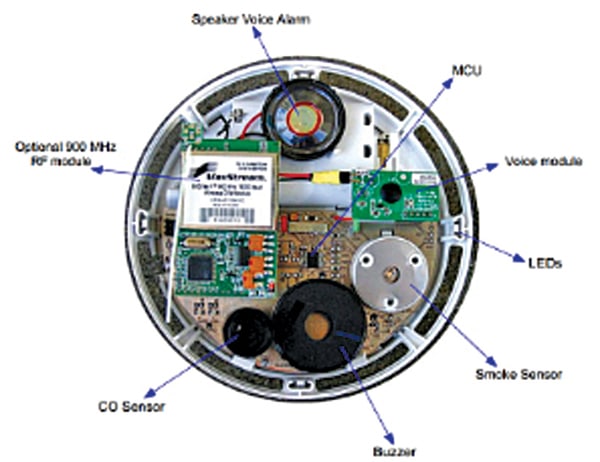 This Carbon Monoxide (CO) Detector reference design from Zilog is based on electrochemical-cell sensor technology. The electrochemical sensors are more robust than any other CO detector. It is based on a Zilog’s Z8 Encore XP microcontroller (MCU) and the Sixth Sense ECO-Sure (2e) CO sensor. The on-chip integrated hardware of the MCU minimises the board space with very few external components. The MCU also implements a power management routine to conserve power. An optional 900MHz RF module can be added to the reference design that can add wireless networking and monitoring features, making it suitable for various applications. This unit runs on three AA-size batteries and has a blinking LED indicator to indicate the status of the detector. With little modification, the design can be run using rechargeable lithium-ion batteries.