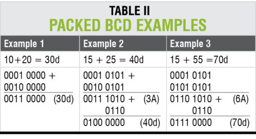 To solve the problem, add six to the hexadecimal number system (A, B, C, D, E, F). This is done by adding number 6 to the result to get the expected result. Consider the following examples to know the BCD conversion process, as given in Table II.