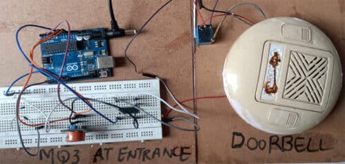 So here in our proposed project, we designed and implemented a Corona Protected Automatic touchless Doorbell using Arduino and MQ3 Sensor.
