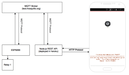 The Communication diagram is shown in above image. This article shows you how to make your own REST API server for the ESP8266 and your Mobile App to communicate to, via MQTT. You can use the existing REST API server that is deployed in heroku or you can deploy your own. If you don’t want to use “test.mosquitto.org” as your MQTT Broker as stated in previous chapter.