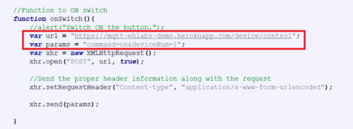 This block creates a route for the ‘/device/control’ POST Method, wherein if this route is being called it will execute the mqttPublish function. The ‘deviceInfo’ variable contains the message for the ESP8266 to translate, wherein ‘dev1-on’ turns the relay 1 on, ‘dev1-off’ off and same thing for ‘dev2-on’ and ‘dev2-off’.
