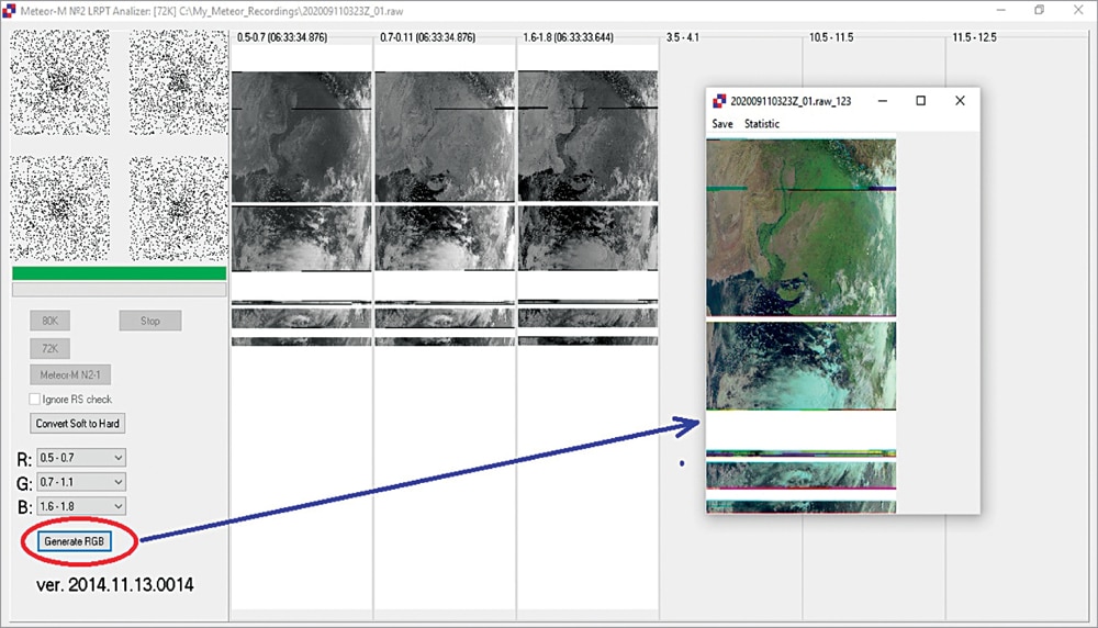 This is the final step in our effort to demodulate the earth imagery from the Meteor satellite data. From the above discussions, either through the plug-in or through the manual demodulation, we get the .S or the .RAW file. At this stage, we shall require the Off-line Meteor LRPT Analyser software, as mentioned earlier in this article.