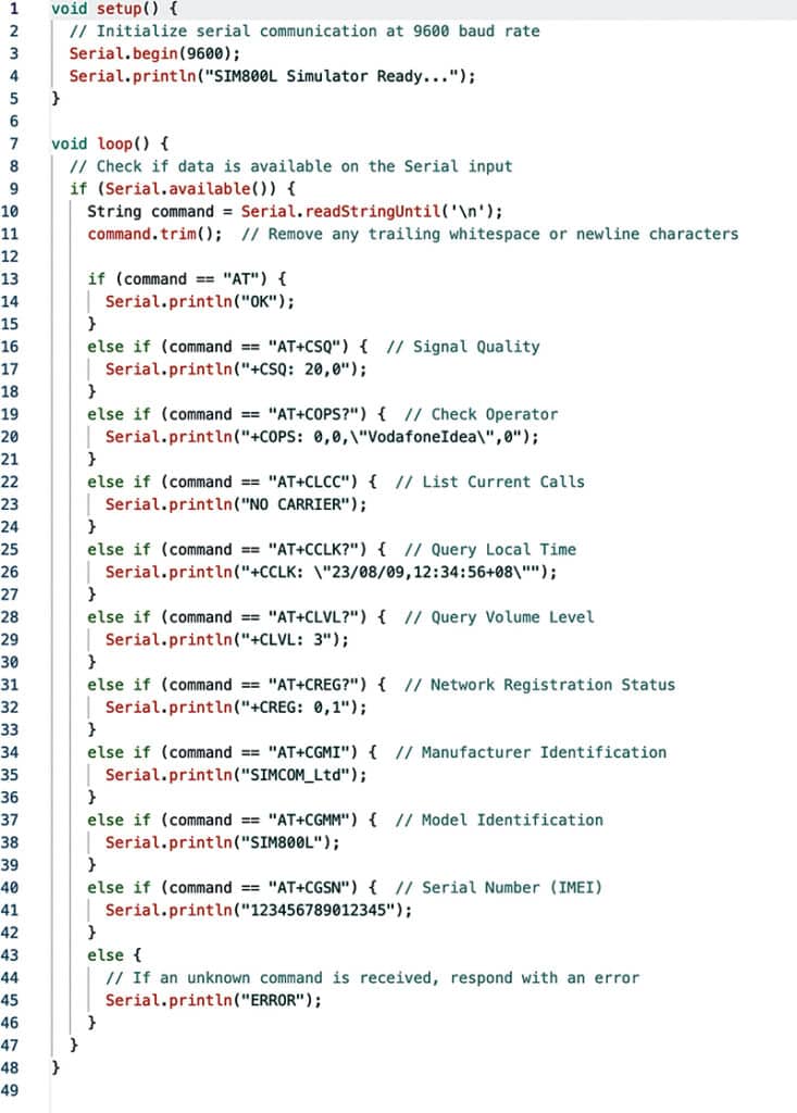 Fig. 7 shows the code snippet for testing GSM and making calls or sending messages. Fig. 8 shows the 4G GSM module.
