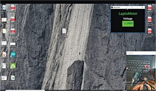 We generally measure voltages with a multimeter or a voltmeter. But you can also measure low-value DC voltages up to 5V that are generally found in electronics circuits with this laptometer and see their value on laptop monitor.