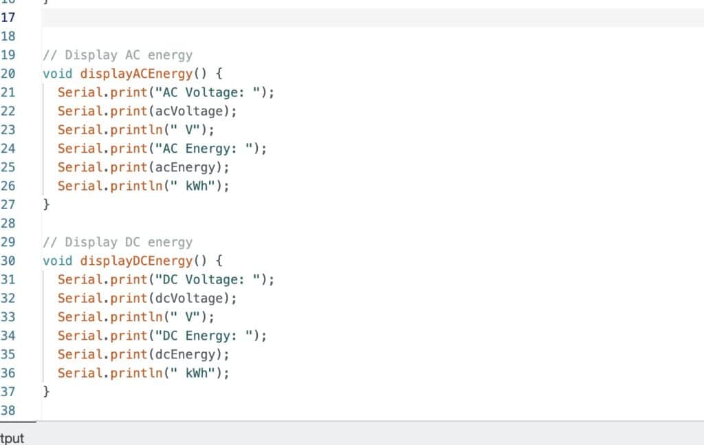 Here in code first the pin number is defined for the touch switch and current sensor then we have to create the function that will handle the touch input and move to functions to calculate different values for different modes.