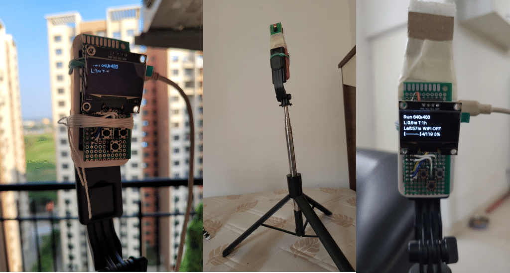 To address this drawback, we present a modified version of the time-lapse camera built on the Raspberry Pi Zero 2 W platform. This version offers extended battery operation of up to 10–12 hours on a single 18650 Li-ion cell, making it highly suitable for real-world time-lapse applications. Mounted on an inexpensive yet sturdy selfie tripod, the setup is both practical and aesthetically pleasing. The total cost of the project is ₹ 2500.