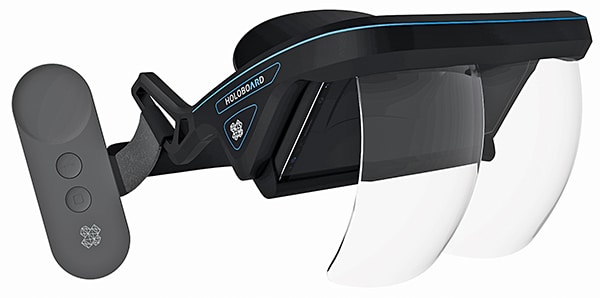 Holoboard consists of an AR headset that can be connected to a smartphone (condition to compatibility) to create the augmented simulation. The user can simply slide the smartphone inside the holder of the headset to get going. The system utilises the camera and sensors of the smartphone in sync with its own sensory components to operate. Essentially, it creates a virtual AR display, which is amplified in front of the eyes at a maximum resolution of 3840×2160 pixels.