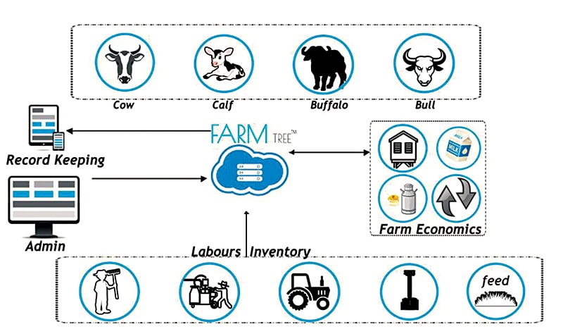 Farmtree by Inhof Technologies is a farmer’s diary that lets him or her record farm data easily and quickly, which makes managing the farm easy. Due to its seamless user interface, it is easy to operate, too. It is a one-in-all platform that tracks the activities and performance of cows and buffalos in every farm of India, prompting better decision-making and, hence, better profitability. Once data is recorded in the system, the platform analyses and presents it to the farmer for maximising the dairy farm output.
