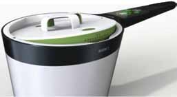 London design agency Precipice created Simr as part of BBC’s Imagineering project, but it is something we would all like to have in our kitchens! The goal of Simr, an intelligent saucepan, is to improve cooking skills, reduce accidents, and make product care and maintenance easier. The saucepan has a lid that can be tilted to allow steam to escape and for straining; twin skin construction that allows a heat exchanger to be used between the skins to provide more even heat distribution; and a curved design and hydrophobic coating that make cleaning easier. A removable smart module on the handle monitors cooking temperature, weight, etc, and sounds an alarm if the contents are about to boil over.