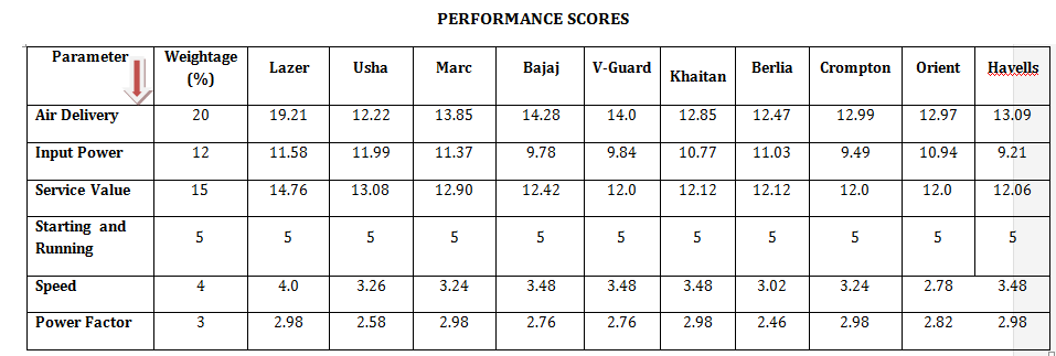 - Again, Lazer scored highest followed by Usha. V-Guard, Crompton and Orient had the minimum score.