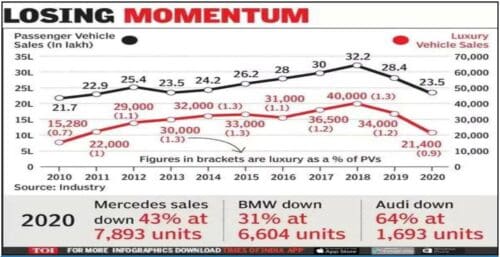 Source: – https://timesofindia.indiatimes.com/business/india-business/luxury-cars-skid-clock-lowest-sales-since-2010/articleshow/80263733.cms