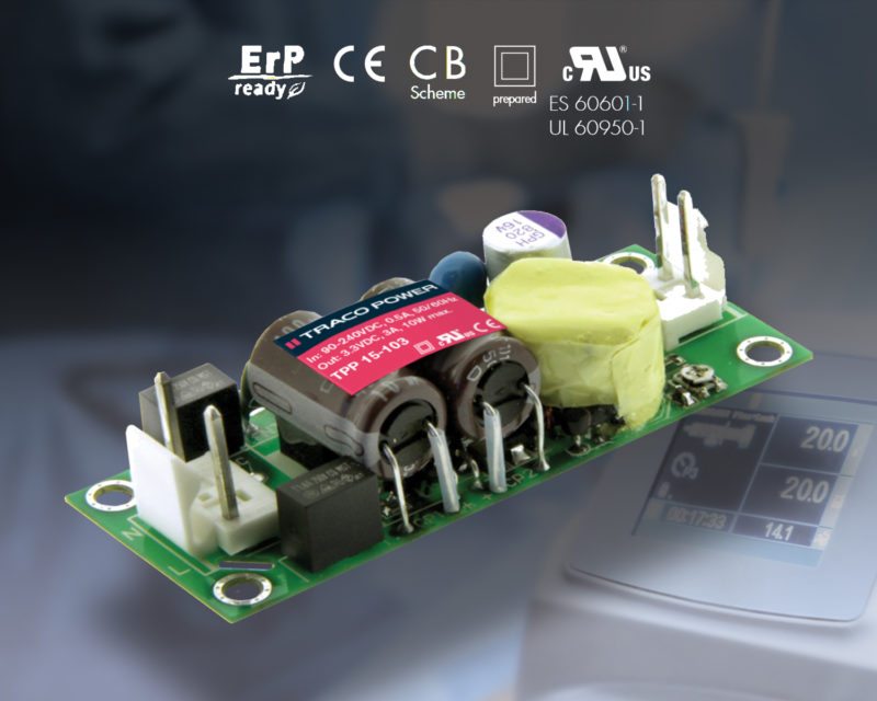 TRACO POWER has announced the release of their TPP15 family of miniaturized, open-frame power supplies with an extended operating temperature range of -40C to +85C and both Industrial and Medical safety approvals.