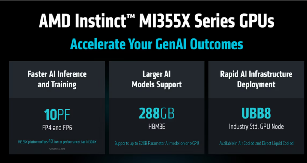 At the system level, AMD reported over 1 million tokens per second in both server and offline inference scenarios, positioning its hardware for high-demand AI services supporting large user bases. The company also demonstrated a 3.1× generational performance uplift over its previous AMD Instinct MI325X, underscoring rapid iteration in its CDNA-based accelerator roadmap.