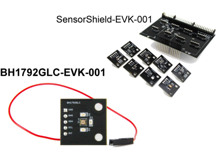 A heart rate sensor evaluation board (BH1792GLC-EVK-001) for use with our sensor shield (SensorShield-EVK-001) is available for purchase through online distributors. The sensor shield supports open platform MCU boards such as Arduino Uno.
