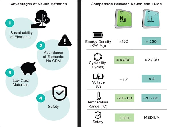 Rechargeable lithium-ion batteries (LIBs) have unmatched energy density and versatility. From electronic gadgets to electric vehicles (EVs), they are widely used, and their popularity is increasing day by day as they provide fast-charging rates and long life cycle. However, their ever-increasing application, global demand, and rising cost due to the declining availability of lithium and other raw materials such as cobalt, copper, and nickel are causing unprecedented pressure on the supply chain. Sodium-ion batteries (SIBs) are emerging as the most promising technology for replacing LIBs, as they share the same fundamental working principle, cell construction, power delivery characteristics, and wide application due to their low charging time, greater life cycle, and low cost. SIBs use raw materials that are abundant, cheaper, have a reduced impact on the environment, and provide better safety during operation and transportation. Additionally, they can be discharged completely to zero volts, causing no risk of thermal runaway, and perform effectively at temperatures ranging from as low as minus 20 degrees Celsius to as high as plus 65 degrees Celsius. Therefore, sodium-ion batteries (SIBs) are emerging as a viable technology on the cusp of commercialisation. Presently, SIBs are considered most suited for applications such as short-range electric vehicles and large-scale energy storage systems. They also have the potential to store renewable energy generated from sources like solar and wind power and can serve as a more cost-effective choice for electric vehicles.