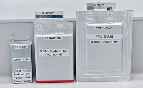 Faradion, a UK-based startup working on SIB technology for several years, has been acquired by India’s Reliance Industries (RIL). Faradion has developed pouch cells using oxide cathodes, hard carbon anodes, and a liquid electrolyte. The batteries provide an energy density of 160Wh/kg, a cycle life of 300 (100% depth of discharge) to over 1,000 cycles (80% depth of discharge), and can be transported in the shorted state (0V), reducing the risk during movement.