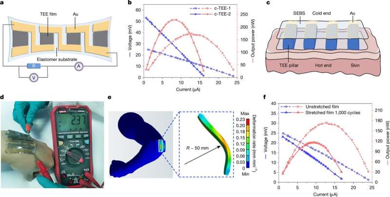 Scientists from Peking University have developed a rubber-like material that can turn body heat into electricity, opening the door to self-powered wearable devices and medical implants. Reported in Nature, the material is the first highly elastic thermoelectric elastomer that combines skin-like stretchability with efficient energy conversion. It works on the principle of thermoelectricity, where differences in temperature generate electrical current. Since human skin maintains a steady 37°C while the surrounding air is typically cooler, the material can continuously harvest this gradient to produce power. Unlike rigid thermoelectric devices, the elastomer retains its performance even when stretched up to 150% and can endure extreme strain of over 850% without breaking.