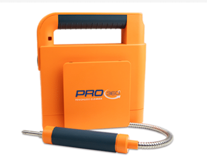 At the heart of the innovation is Coandă Effect fluid flow technology, which delivers a controlled jet of atomized, high-purity cleaning fluid followed by a focused burst of pressurized air. This process ensures complete removal of dust, oil, and other residues across the entire connector end face, from the core to the ferrule edge. Unlike traditional mechanical “click-to-clean” tools, which may leave contaminants at the chamfer, the Pro360° achieves full-surface precision cleaning in just one cycle.