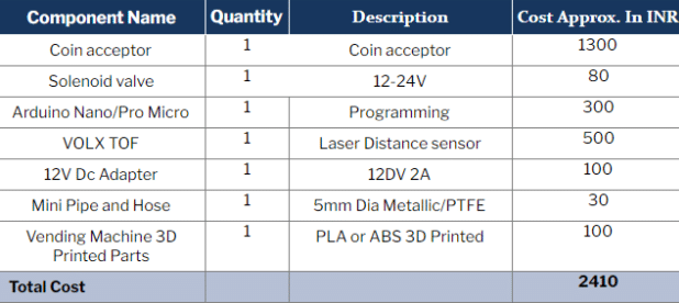 The programming code required for the vending machine will process the signal from the coin acceptor and send it to the relay module for turning ON the solenoid valve for dispensing the liquid. At the same time, the feedback from the TOF sensor will help estimate the level at which a drinking glass gets filled. The solenoid valve stops when the glass is full.