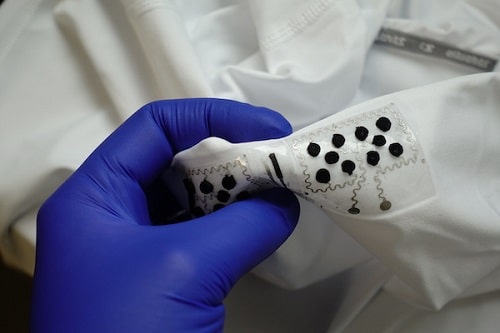 The wearable microgrid is built from a combination of flexible electronic parts that were developed by the Nanobioelectronics team of UC San Diego. Each part is screen printed onto a shirt and placed in a way that optimises the amount of energy collected.