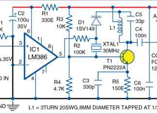 This FM transmitter design is one of the simplest you can build. No tuning is required, as the transmit frequency is crystal-locked at 90MHz....
