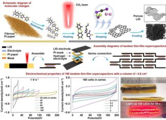 Researchers at Guangdong University of Technology have developed an ultra-compact, metal-free thin-film supercapacitor stack that outputs 200 volts—using laser-induced graphene and no traditional wiring.