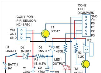 This circuit produces an alarm whenever someone comes near the spotting range of its passive infrared (PIR) motion sensor. It can be used as...