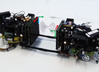 The robots use sound to lift and move things without touching them. They can work alone or together to carry objects.