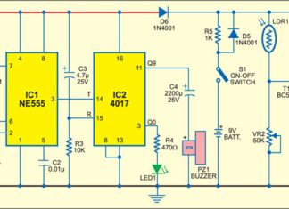 This Solar Bug circuit takes power from a small solar panel and then produces a sound in a buzzer momentarily when the relaxation oscillator...