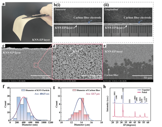 When subjected to cyclic tensile loading perpendicular to the fibre direction, the composite generates piezoelectric voltage of 1.1 volts.