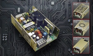 Advanced Power Solutions (APS) announces the APS303Rx series 300-watt industrial power supplies in a chassis mount u-frame package measuring only 5.0 x 3.3 x 1.5” with optional top cover, top-mount fan or end mount fan packages.