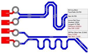 - Differential Pairs with length matching are now supported in Easy-PC. Functionality has been added to enable their definition, parameters, addition, editing, checking, and reporting. Once the pair of signals are identified in the design, the Diff Pair option enables the designer to start routing without further setup. Options are available to automatically create the starting tracks from the source pads before collecting the tracks together to form the Diff Pair.