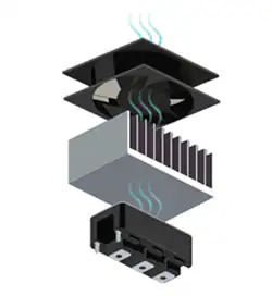 The most straightforward and reliable thermal management solution combines heat sinks with forced air (Figure 2). While the thermal resistances within a semiconductor device like an IGBT are typically very low, the thermal resistance between the device and the surrounding air is significantly higher.