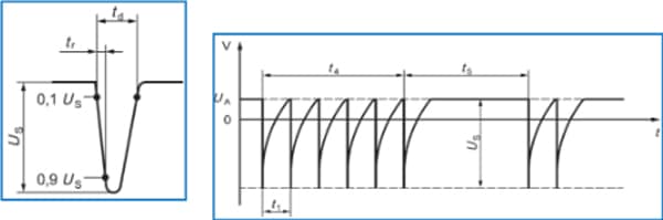 Pulses 3a and 3b define the negative spikes that may occur as a result of switching processes, influenced by the distributed capacitance and inductance of the wiring harness, as shown in Figs. 10 and 11: