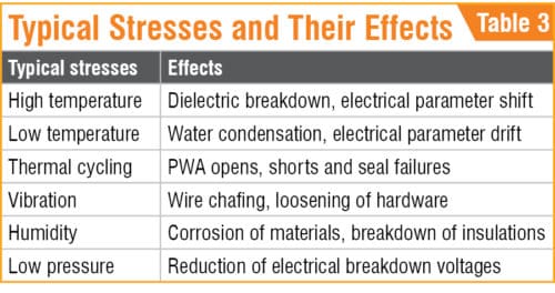 Every product encounters a number of stresses during operation, storage, handling and transportation. Examples of stresses are temperature (high and low), thermal shock, humidity, mechanical shock, vibration and so on. These stresses can cause failure of solder joints, mechanical joints and components by thermal, mechanical and chemical actions. Hence, the test engineer needs to know all these stresses and their values applicable to the product. Typical stresses and their effects on product performance are given in Table 3, and this list is not exhaustive.