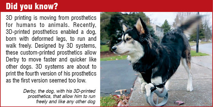 In medical field. 3D-printing technology is a very rapidly developing field. Every day we hear of new things that are being done with the help of 3D printing. Shishodia says, “Printing computerised tomography (CT) scans of patients provide doctors with exact moulds required for producing transplant parts. A patient was recently transplanted with a 3D-printed titanium facial implant. There are research labs working on printing complete organs using 3D printers by using amino acids and other life-forming chemicals, such as ink.” He adds, “A home project started by a father by printing a prosthetic hand for his son has taken the shape of a massive revolution of 3D-printed prosthetics.”