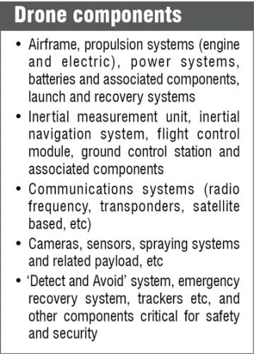 Notable in case of India is the government’s PLI scheme for promoting manufacture of drones in the country. Offering incentives worth ₹1.2 billion (US$16.06 million), the policy covers almost every critical component required in a drone and envisages to build an ecosystem that fosters drone manufacturing. The opportunities present are not just for big established organisations, but also for startups.