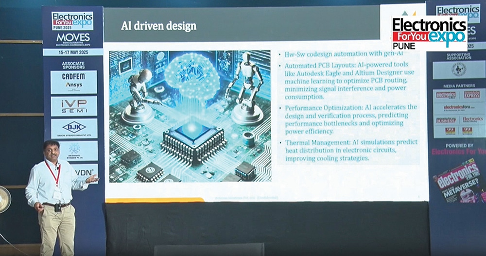 In parallel, these tools optimise performance during hardware–software partitioning and while refining the schematic. Thermal management is another key aspect of this stage. Projects can fail due to inadequate thermal design. For example, a projector engine developed over 20 years ago generated significant heat, causing the commercial product to overheat—a challenge many engineers may have encountered. Generative AI can assist by assessing heat generation from previous designs and predicting thermal challenges as designs move from schematic to PCB, making thermal management a valuable byproduct of the workflow.