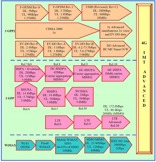 Even though none of these technologies are fulfilling the IMT-Advanced criterion, each one has an evolution path to get there. An evolution path to 4G is depicted in Fig. 1.