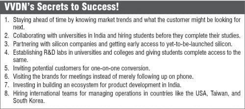 A. VVDN was started in 2007. Me and all the other founders of VVDN were in California when we started thinking of starting the organisation. It was clear to all of us that we would make VVDN a company that offered complete product engineering services. We knew what we had envisaged was not usual as India had been a software-centric country.