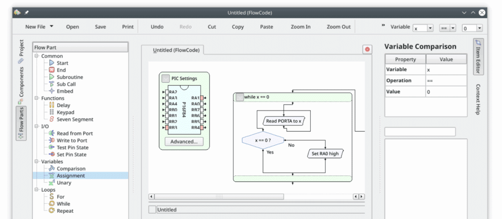 - Language interconversion: You can switch between FlowCode, MicroBASIC, and Assembly/Hex, which is very handy for educational or prototyping use cases.