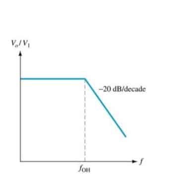 A Low pass filter (LPF) is used in circuits that only allow low frequencies to pass through. It is often used to block high frequencies and AC currents in a circuit. Given below is a sample LPF circuit using op-amp. Ideally, the frequency output of an LPF is like this, but this is not the case with real circuits. As there is a slight attenuation. This attenuation can be further minimized by adding multiple stages as below.