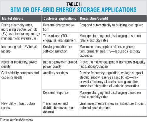 2. Off-grid applications covering behind-the-meter (BTM) systems are installed at the customer side of a utility meter and primarily help reduce costs and improve resiliency for commercial and industrial (C&I) or residential customers (Table II)