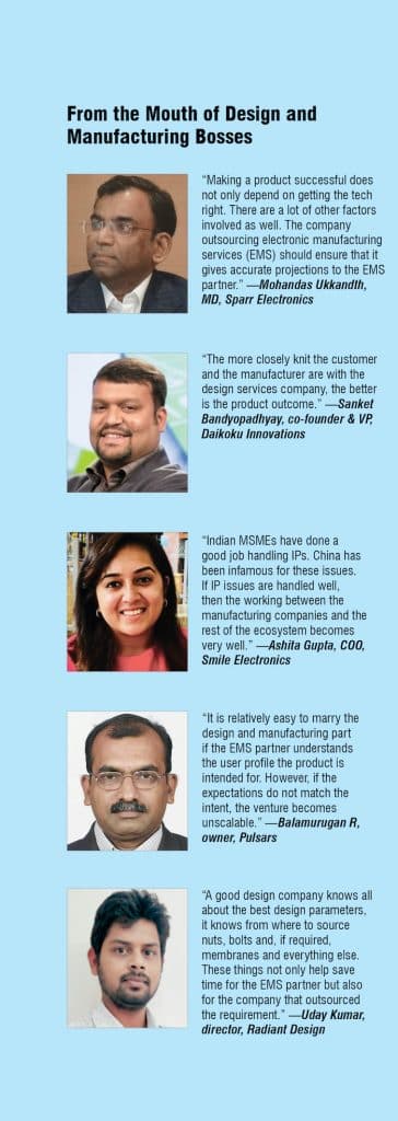 “It is relatively easy to marry the design and manufacturing part if the EMS partner understands the user profile the product is intended for. However, if the expectations do not match the intent, the venture becomes unscalable,” explains Balamurugan R, owner, Pulsars.